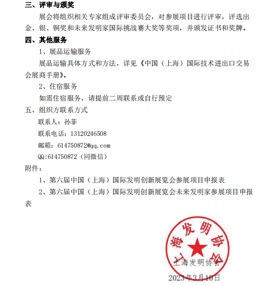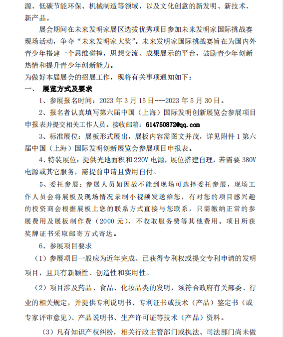 关于2023 第六届中国(上海)国际发明创新展览会招展通知
